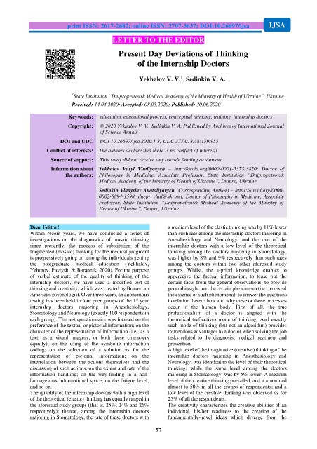 Copyright: © 2020 Yekhalov V. V., Sedinkin V. A. Published by Archives of International Journal