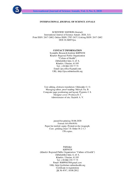 Рrint ISSN: 2617-2682; Online ISSN: 2707-3637; Linking ISSN: 2617-2682